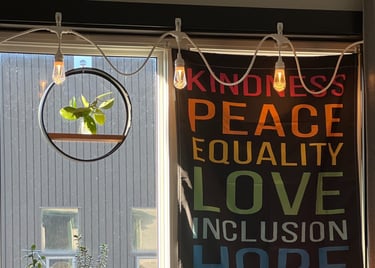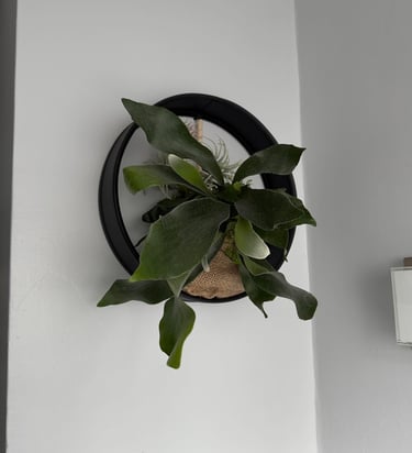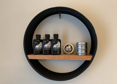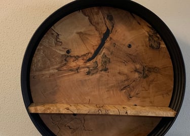 It's hanging in our bathroom; have received many compliments on it. Love the upcycled story regarding this round metal shelf.