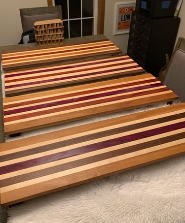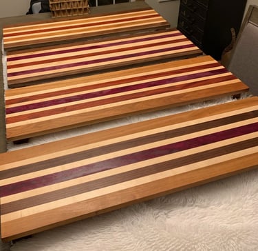 Trays of different sizes and woods; Charcuterie Boards f/k/a Table Runners are approximately 36" long and 11"-12" wide